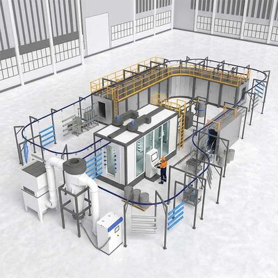 4.Conception modulaire et évolutive: le système est composé de composants modulaires, y compris les tunnels de prétraitement, les cabines de poudre et les fours de durcissement,permettant des configurations personnalisées pour répondre à vos besoins de production spécifiques et à l'espace au sol.