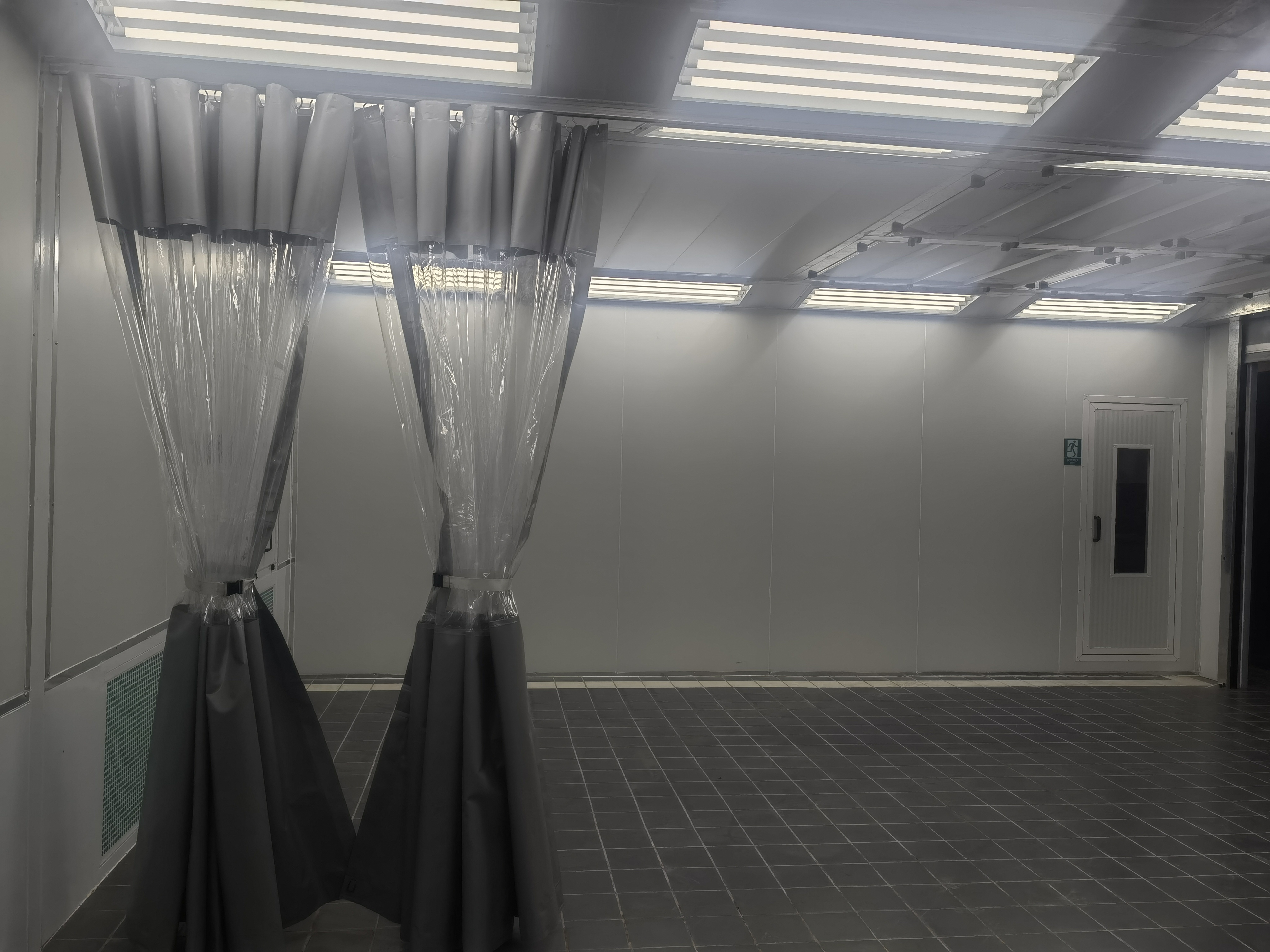 Encastrement de rideau en PVCContrairement à une cabine fixe, la station de préparation utilise des rideaux en PVC coulissants.
