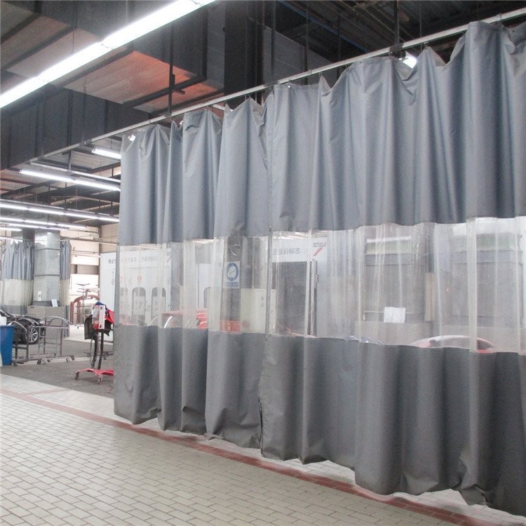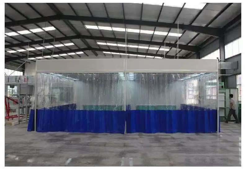 Enceinte avec rideaux en PVCContrairement à une cabine fixe, la station de préparation utilise des rideaux coulissants en PVC.