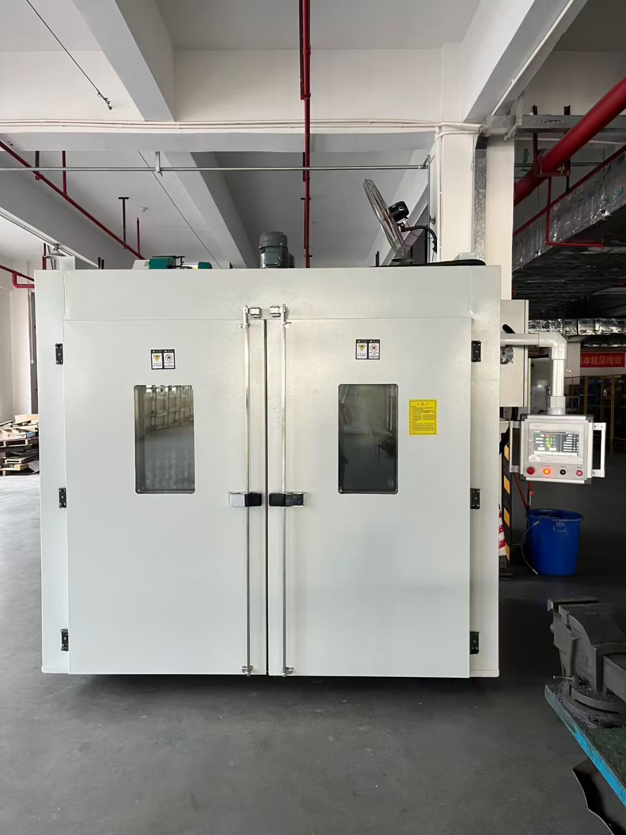 L'avantage du "Flash-Off" Les cabines standard reposent uniquement sur la chaleur. Ce modèle Premium intègre un Système d'accélération du vent (via des buses de plafond ou des soufflantes d'angle). Cela crée un flux d'air turbulent qui brise la couche limite d'humidité sur la surface peinte, réduisant le temps de séchage jusqu'à 50 % par rapport aux cabines standard.